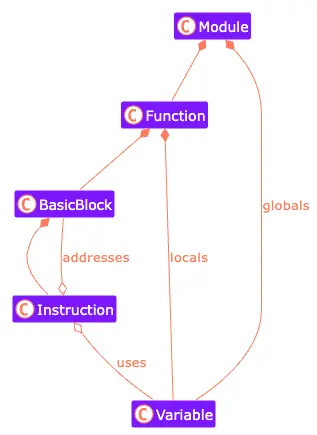The key components of the used bindings library are listed below. They reflect the LLVM API at version 14: