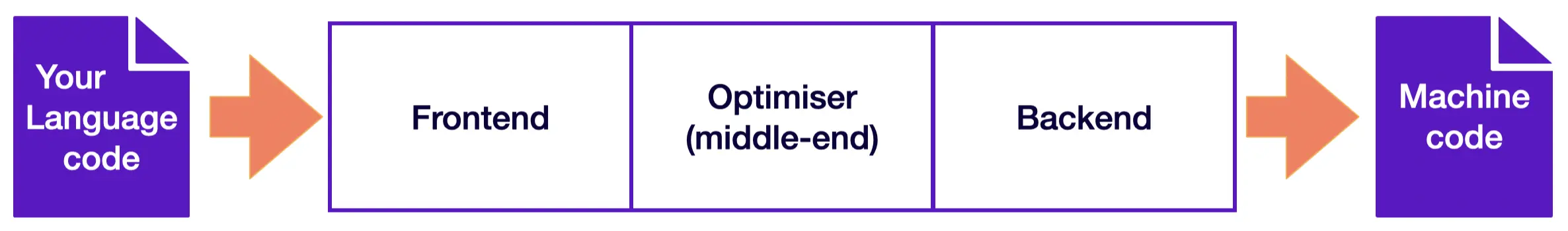 The idea behind LLVM is that compilers for different languages have a lot in common, which can be extracted into reusable libraries. To gain a better understanding of how these common parts look like, let’s explore the architecture of a three-phase compiler.